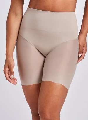 Faja bermuda con ajuste suave en abdomen y costura anatómica para moldear los glúteos. Desaparece completamente debajo de la ropa (corte láser en las piernas). Exclusivo tejido de super-microfibra estética, sin abrochar, súper fino, ligero, compacto y transpirable. Lo recomendamos para faldas y pantalones.