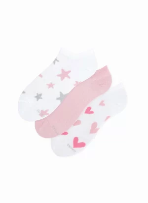 Medias para niñas, modelo talonera . Pack de 3 en colores surtidos. La talla 8-10 que equivale a 32 – 35 de calzado.
