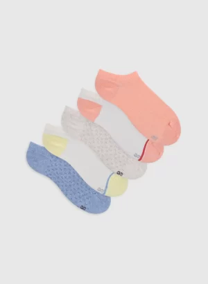 Media hecha en algodon, diseño rib. Corte tobillero, ideal para uso casual o deportivo. Pack incluye 5 pares de medias de colores surtidos. Talla unica de 36-39 de calzado.