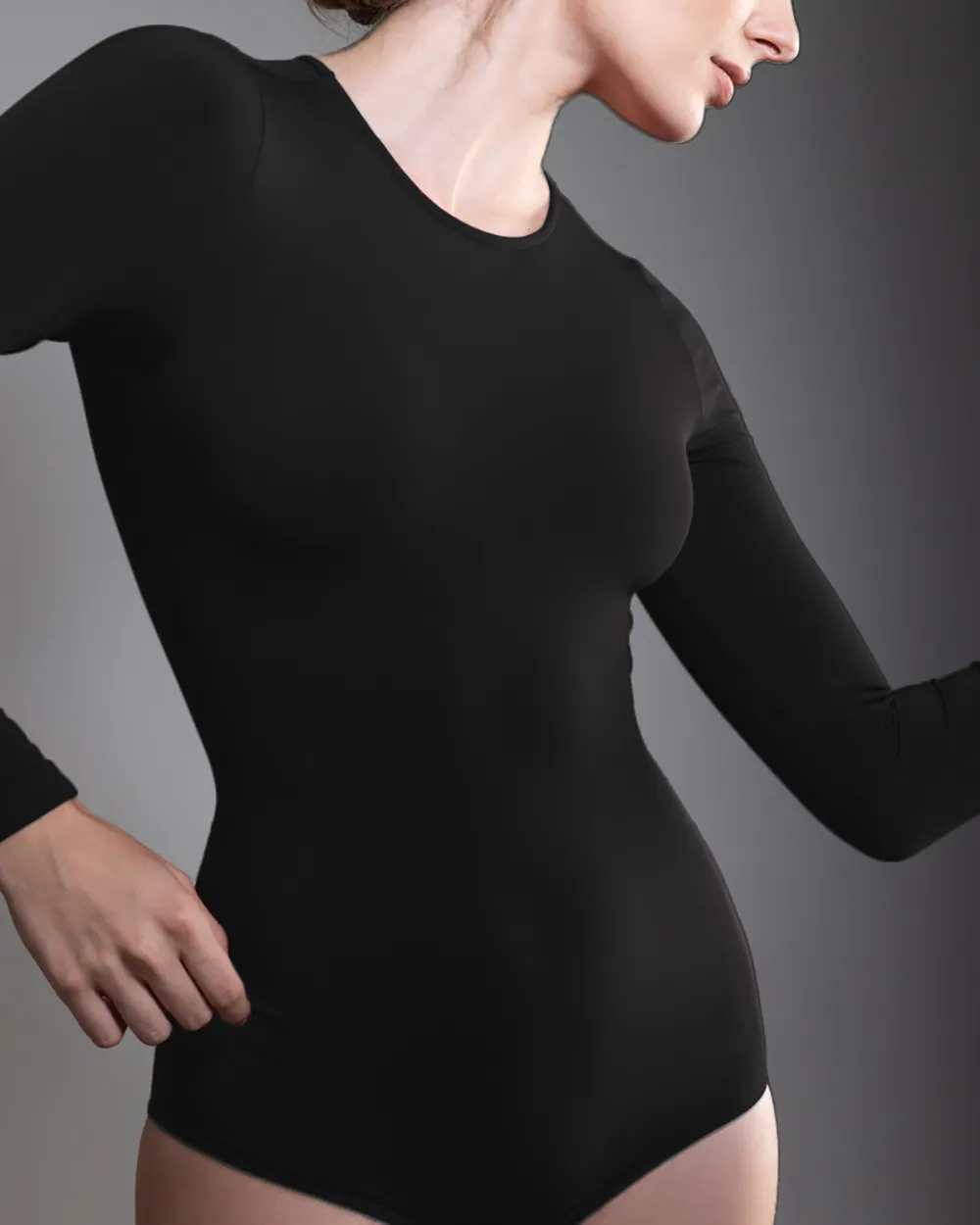 Descubre el Body manga larga está diseñado con un nivel de compresión bajo. Ofrece soporte ligero y confort durante todo el día. Es una pieza diseñada con tecnología seamless, su cuello redondo aporta un toque de elegancia sutil, perfecto para cualquier ocasión. Confeccionado en microfibra. Disponible en tallas S/M y L/XL, y en tres tonos esenciales: negro, azul y milk.