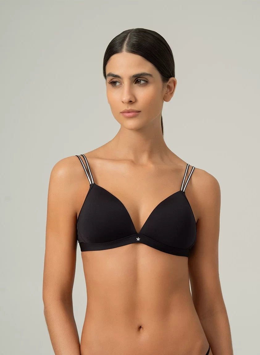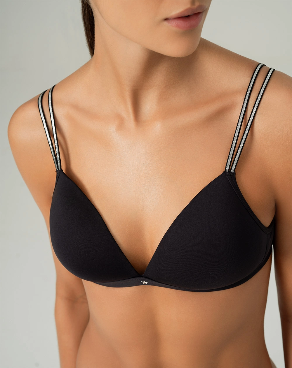 Una variación del clásico bra Magnolia. Este top bra súper cómodo, no lleva aro ni varillas. Tiene una copa juvenil escotada y no muy profundo. Magnolia Lumy tiene dos tiras con lurex. Las tiras son regulables y se pueden cruzar en la espalda. Tiene broches de 2 ganchos con tres niveles de ajuste.