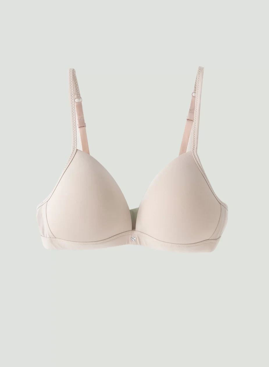 Uno de los bras favoritos, ideal para busto pequeño, copa A o B. Muy cómodo para que lo puedas usar todo el día. La copa es ligera, es una de las opciones para teens como primer sostén o si buscas un bra sin aro ni varillas. Tiene tiras delgadas regulables que se pueden cruzar en la espalda. Hecho en Colombia.