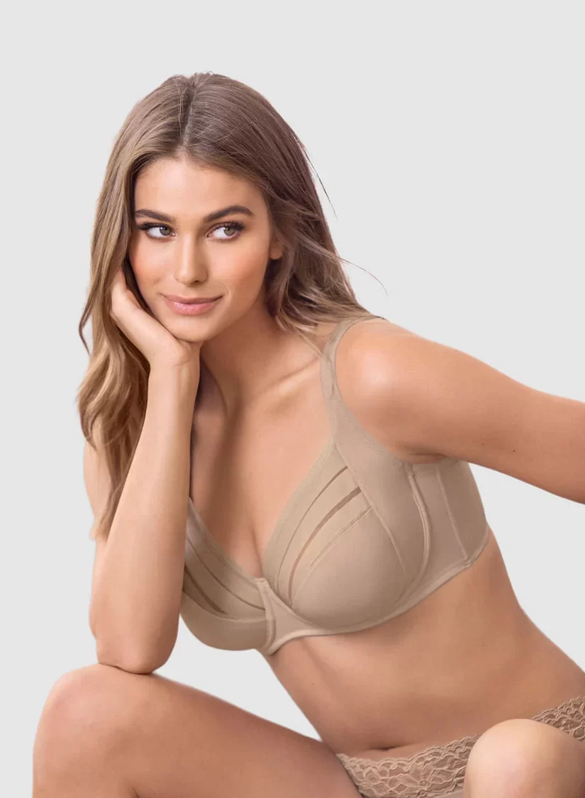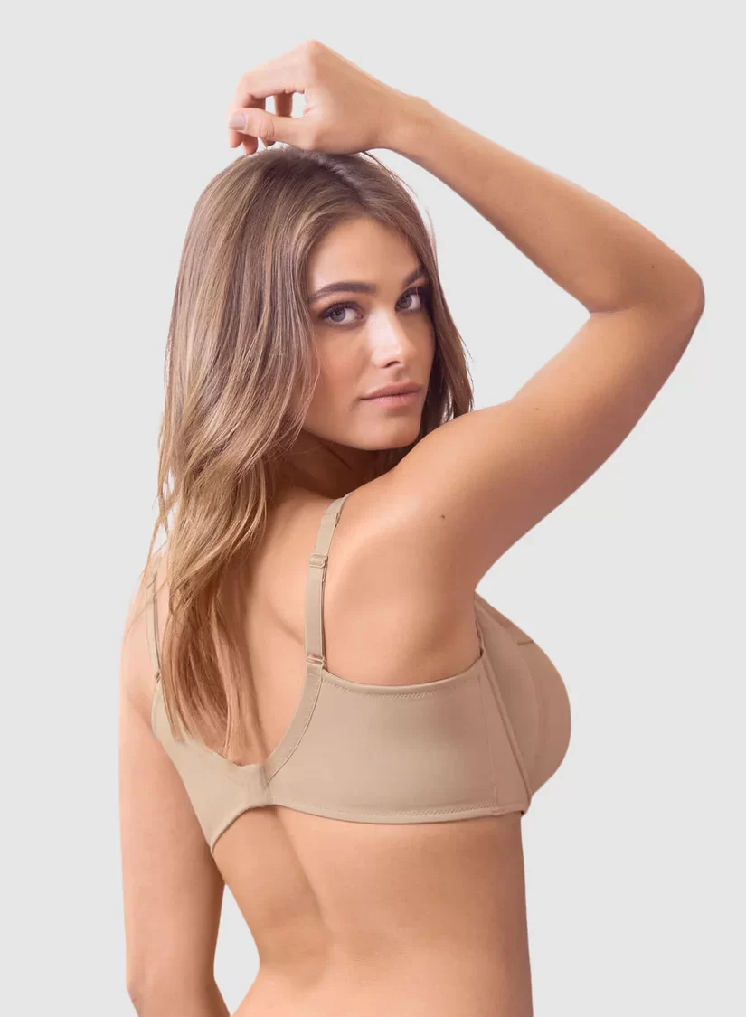 El nuevo brasier con arcos internos, diseñado para brindar buen soporte. Alto cubrimiento de busto y modelación. Varillas laterales para más soporte. Mayor cubrimiento en sisa y espalda. Tiras graduables para un ajuste personalizado. Broche de  3 ganchos con 4 niveles de ajuste para adaptar al contorno.