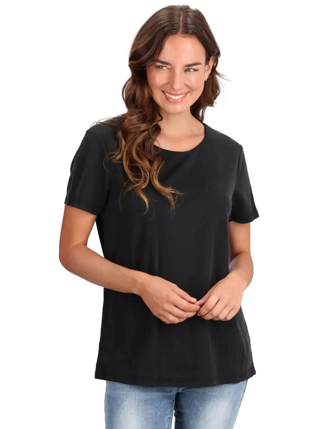 Descubre la suavidad y frescura de nuestra Camiseta Modal, confeccionada en un tejido ligero y delicado. Su material  transpirable te mantiene fresca y cómoda durante todo el día, mientras que su diseño con cuello redondo y corte recto la convierte en una prenda atemporal y versátil. Perfecta para combinar con jeans en un look casual, con pantalón de vestir para un estilo más elegante o bajo una chaqueta en noches frescas.