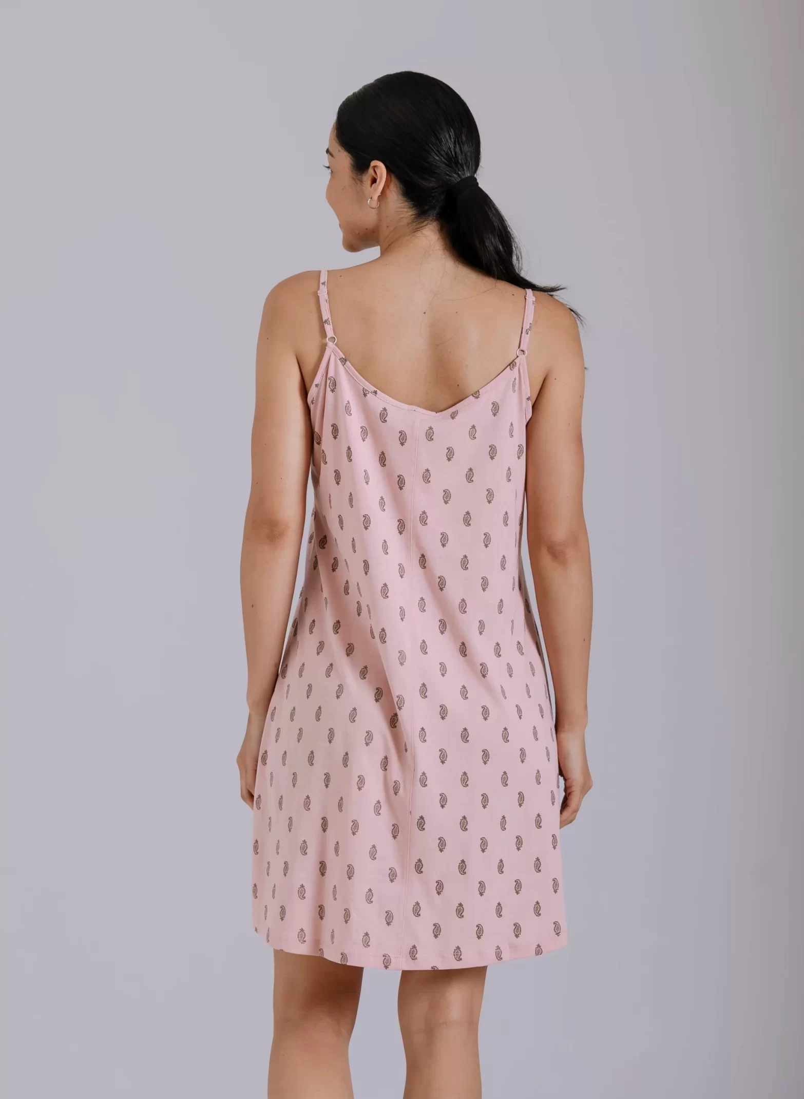 Nuevo camisón confeccionado en viscosa suave y ligera. Su diseño manga corta y modelo estampado le da un toque fresco y femenino. Incluye un delicado detalle de razo en el escote en V, que realza el diseño.