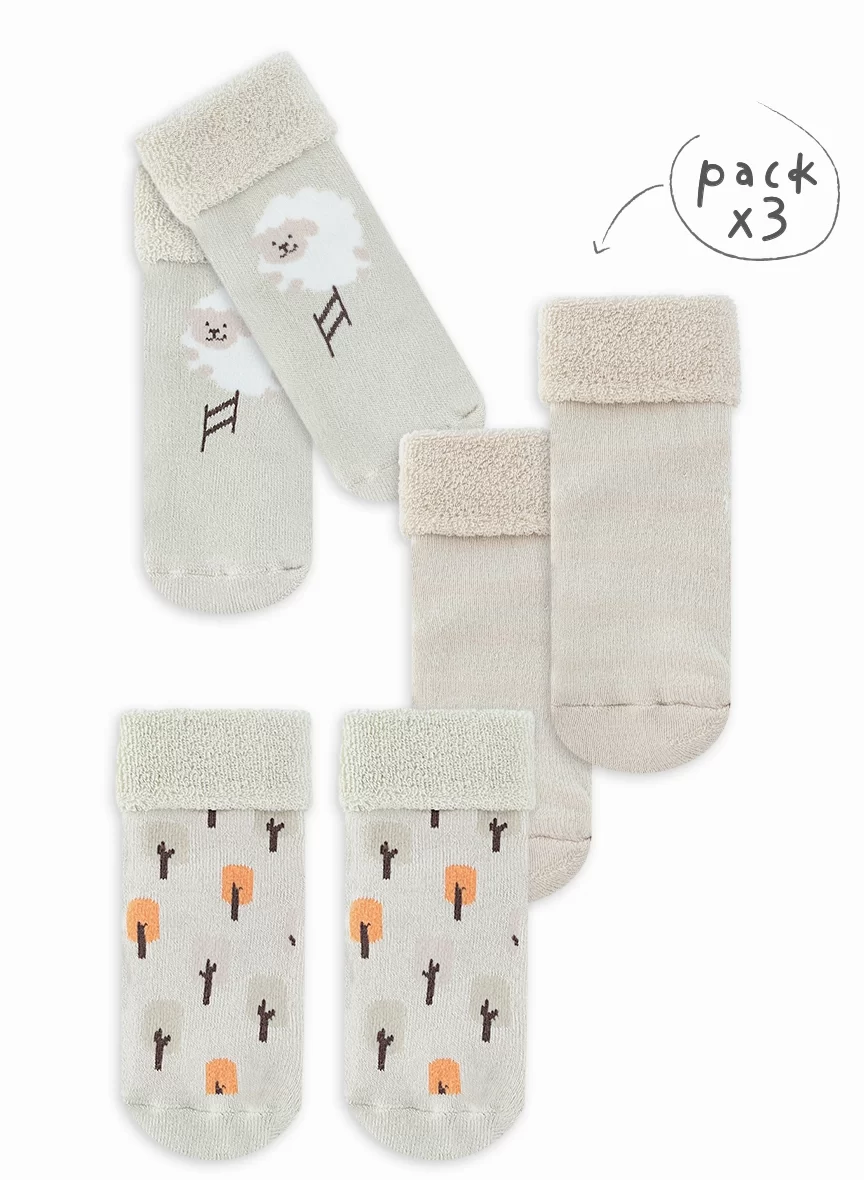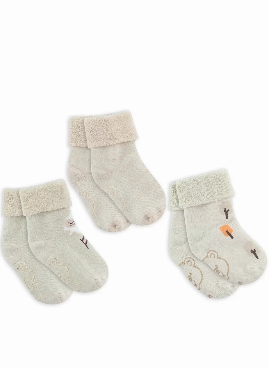 Medias para bebitas, corte largo medio. Pack de 3 pares en colores surtidos. Ideal para invierno, super suaves, diseño doblado en el puño. Elaborada con nylon pelush, fibra cortada que retiene el calor corporal.