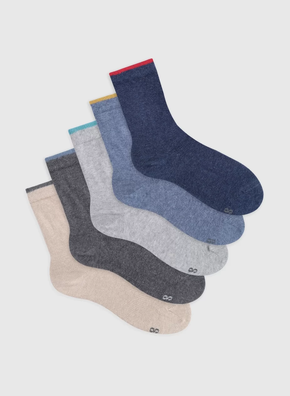 El pack x5 de medias largas KIQET para niños. Confeccionadas en suaves materiales, vienen en colores enteros y vibrantes, ideales para combinar con cualquier look. La talla 8-10 que equivale a 32 – 35 de calzado.