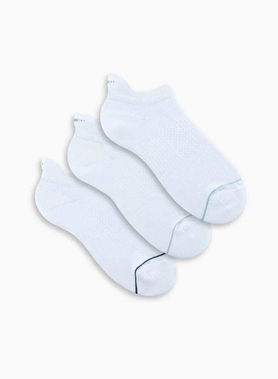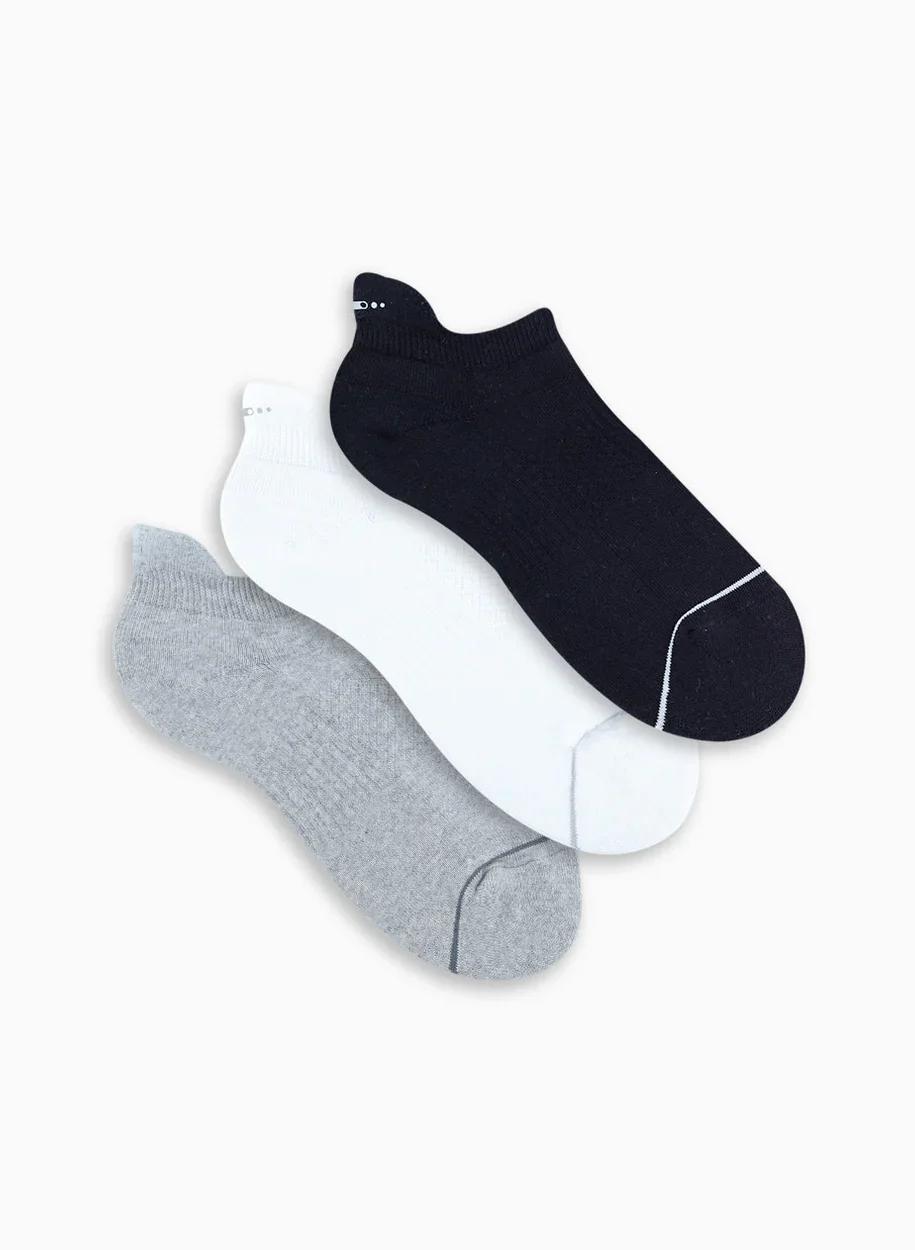 Media deportiva tobillera corta, paquete por 3. Diseñada para brindar comodidad, ajuste y rendimiento en movimiento. Cuenta con elástico en el pie y en el borde superior para un ajuste seguro, y dip en talón, que mejora el calce y la discreción con calzado bajo.
