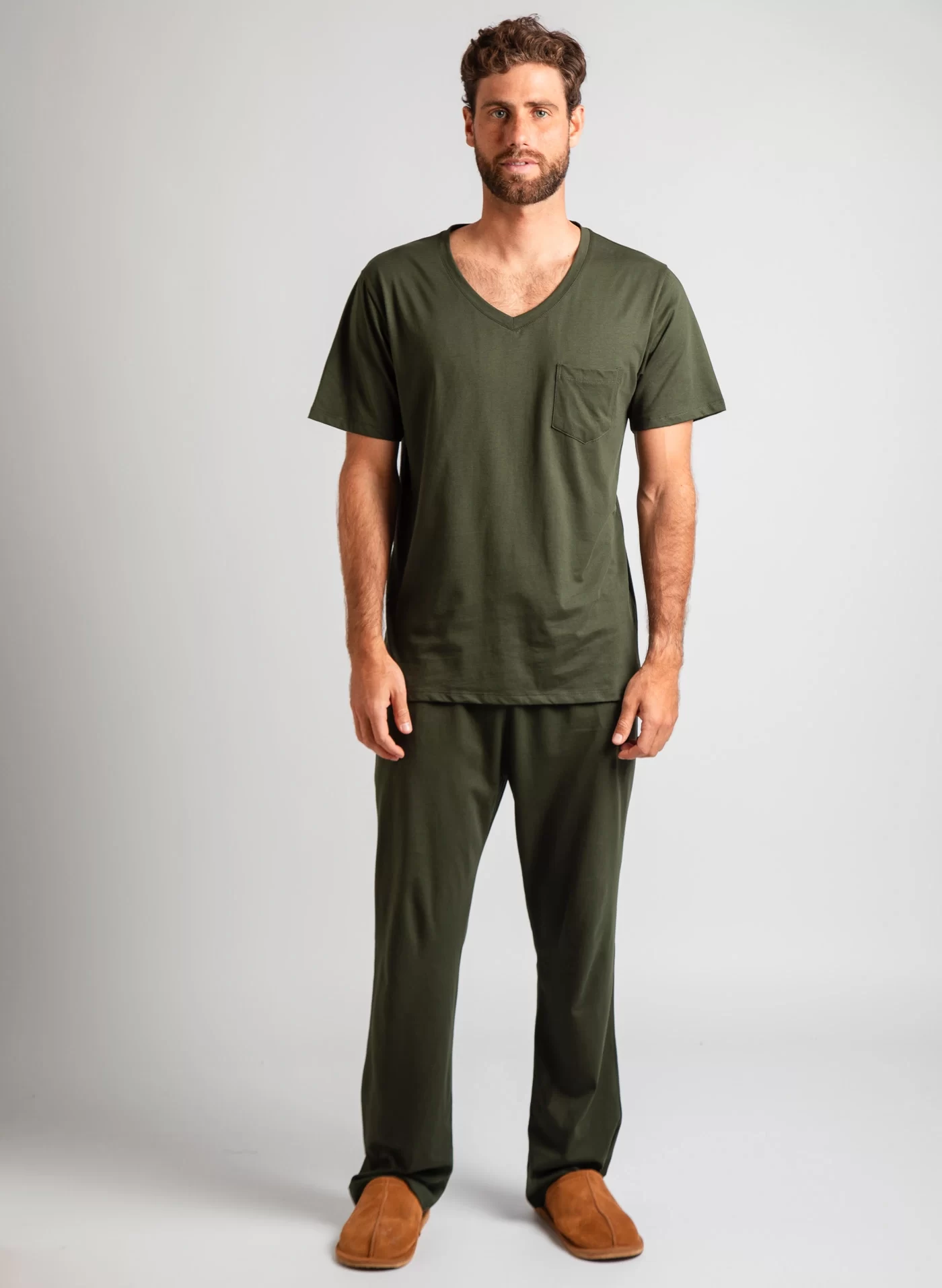 Pijama confeccionado en 100% algodón pima peruano premium. Usamos el algodón pima de la mejor calidad para asegurarte mayor suavidad y durabilidad. Conjunto incluye polo clásico y pantalón con bolsillos.