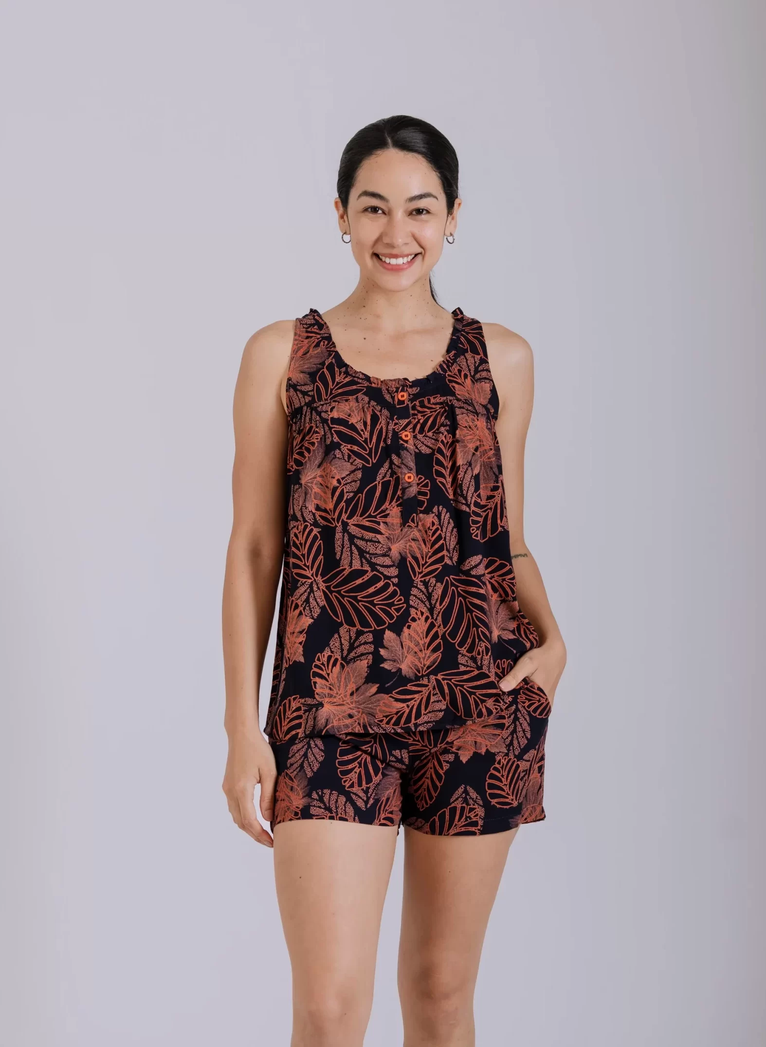 Pijama hecho en 100% viscosa. Sentiras la suavidad de la viscosa, un insumo que natural que proviene de los arboles. Conjunto polo manga corta y short con bolsillos laterales.