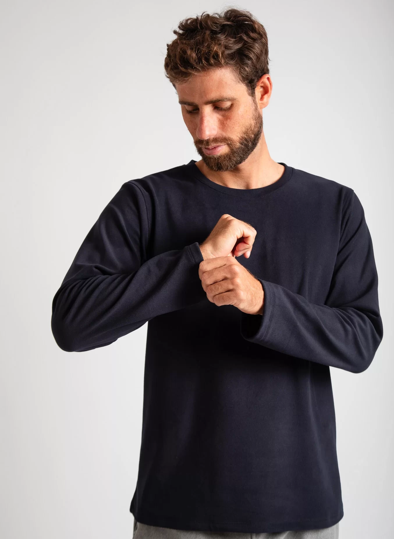 - Polo manga larga, cuello redondo