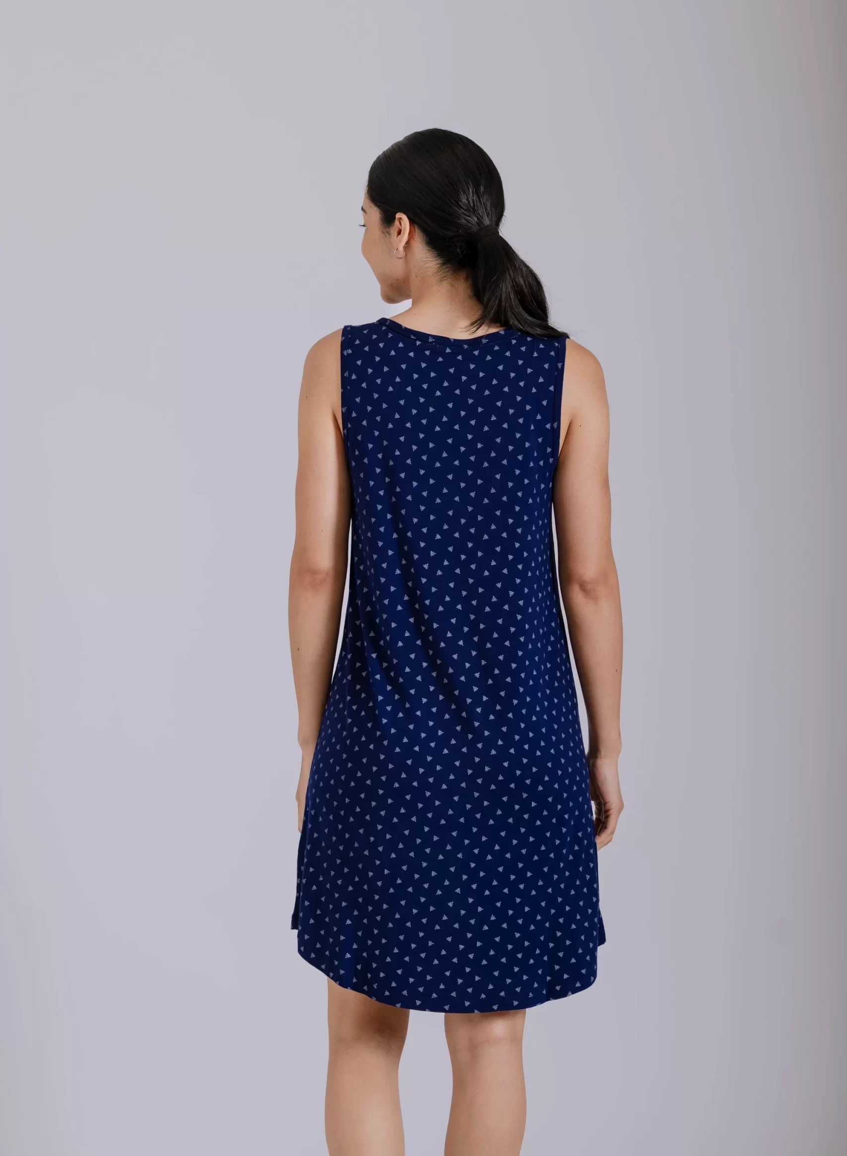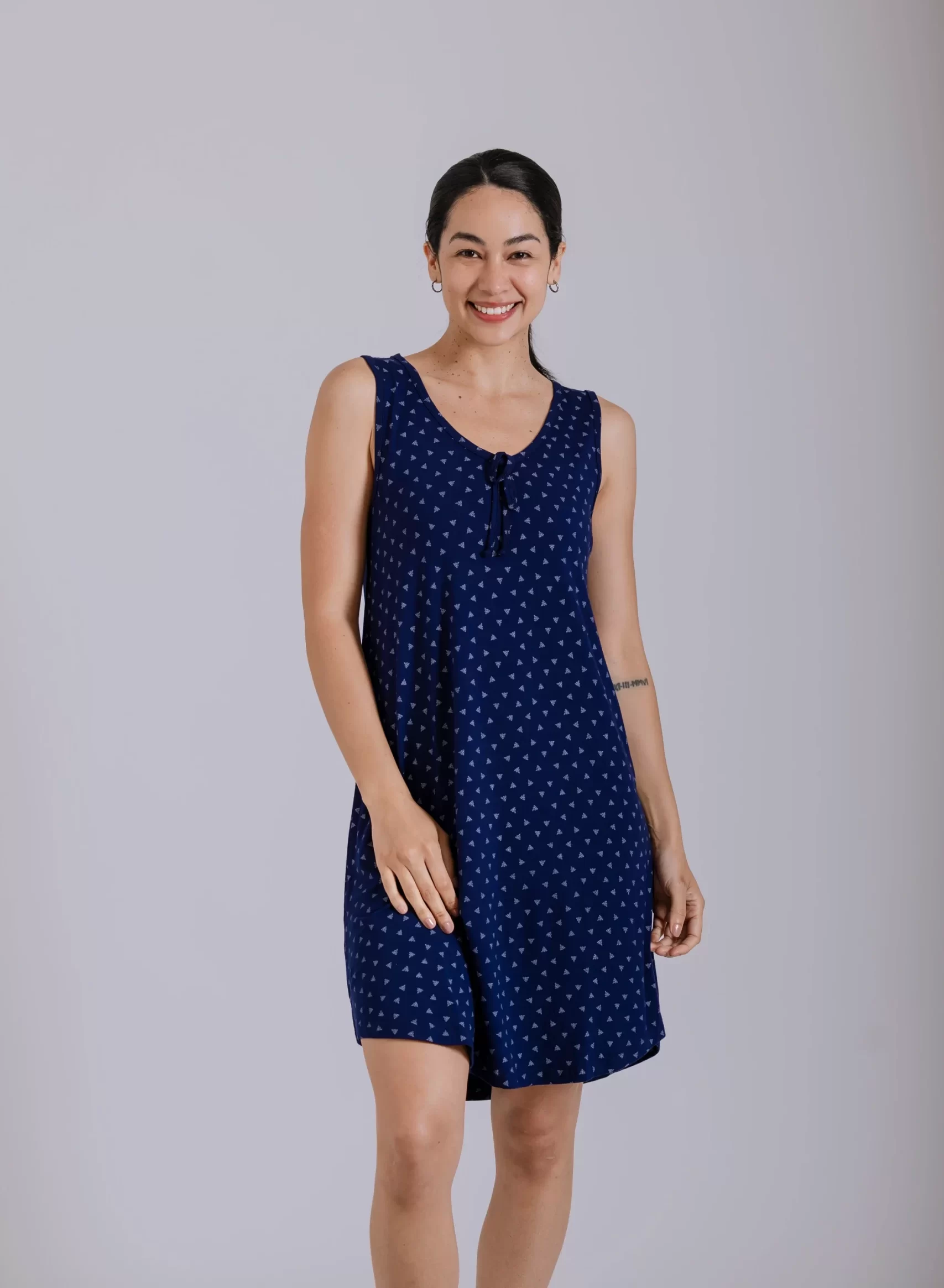 Nuevo camisón de verano manga cero, con un cuello en V que estiliza y dos bolsillos delanteros decorativos que le añaden un toque moderno. Confeccionado en pima modal, es suave y ligero. Disponible en dos colores de verano.