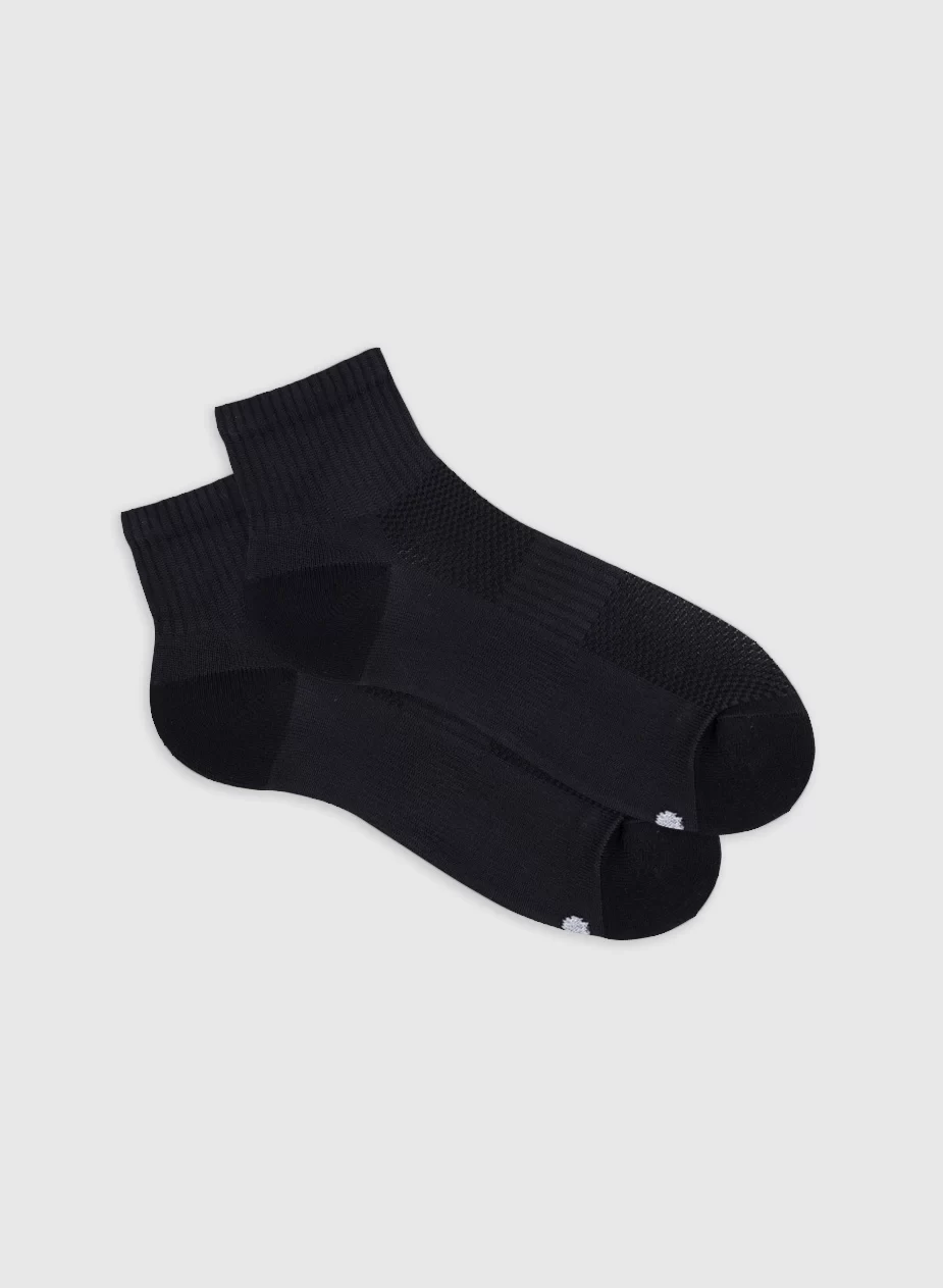 - Con tejido toalla que brinda amortiguación en el talón y protección con banda elástica para mayor ajuste y soporte y con tejido abierto tipo malla que mejora la transpiración