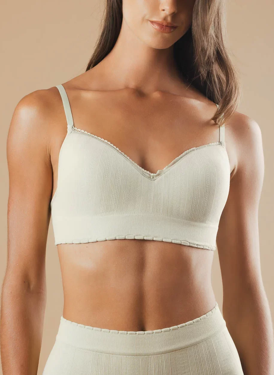 El Top Juvenil Pia de Cachet combina tecnología seamless para ofrecer una experiencia de uso suave y cómoda. Su tejido en poliamida y spandex se adapta perfectamente al cuerpo, proporcionando elasticidad y transpirabilidad. Sin varillas ni cierres, con copas removibles que se adaptan a tus necesidades. Su diseño en relieve aporta un toquee moderno y delicado. Tiras regulables para un ajuste personalizado. Elaborado con fibra Bio Amni ® , un hilo de poliamida parcialmente elaborado a partir de fuentes renovables, sin comprometer la calidad de la prenda. Esta solución innovadora brinda opciones de moda sostenibles y duraderas.